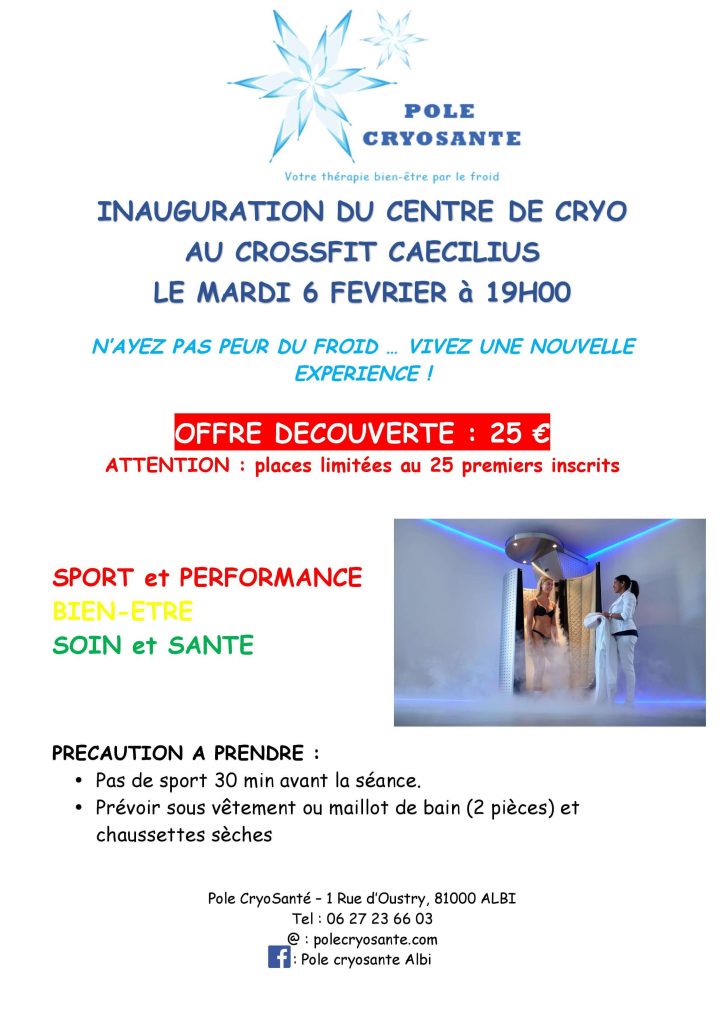Vous êtes invités à l’inauguration de notre centre de Cryothérapie. Nous vous proposons un tarif très attractif pour vous permettre d’essayer ce soin très bénéfique en tout point de vue pour votre santé.