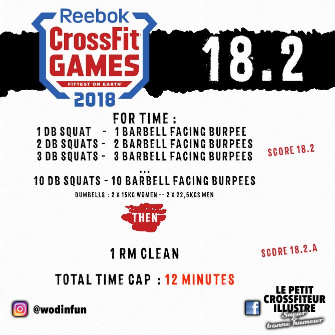 Voilà le 18.2! Après un WOD très cardio, voici un WOD où il faudra soulever lourd. À condition que tu t’endors pas sur les bar-facing-burpees!